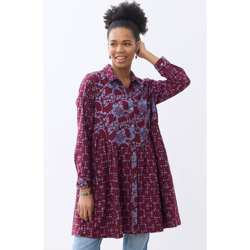 Nishika Button-Down Long-Sleeve Tunic - Radicchio/Periwinkle